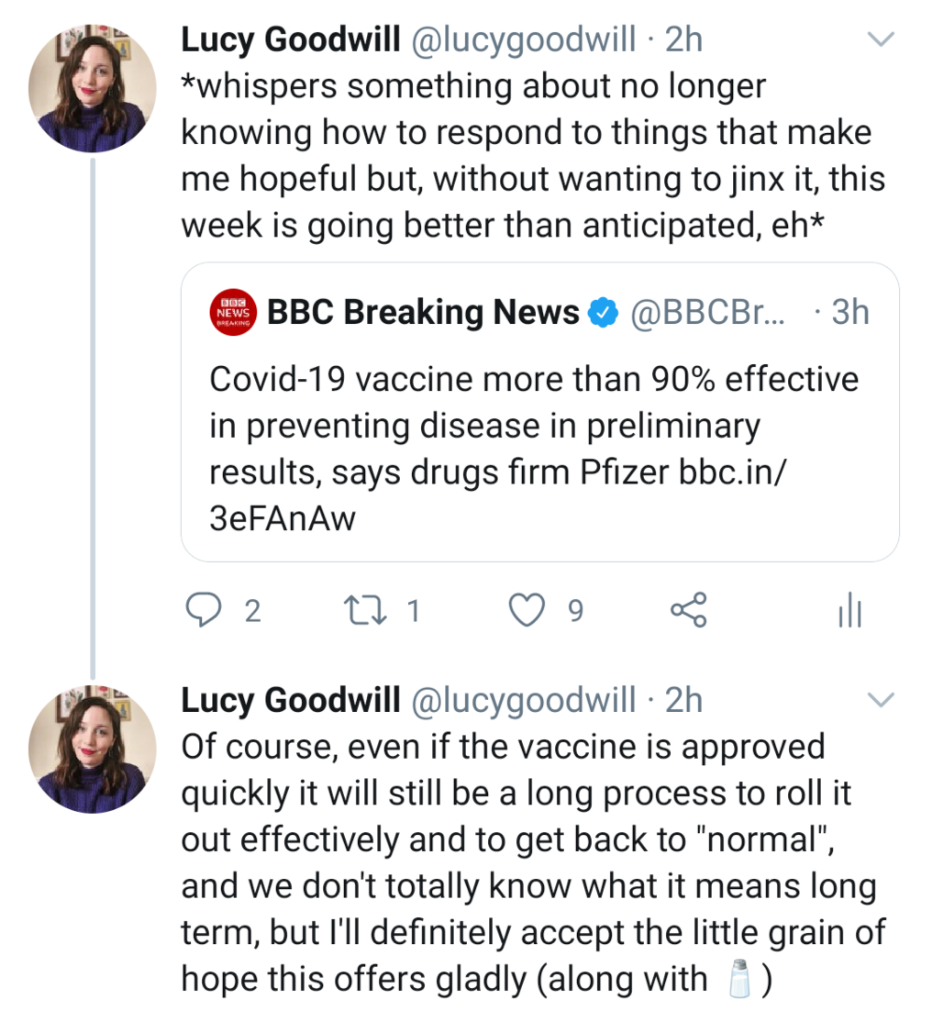 In addition to the above, I found hope in another unexpected place in early November. As a new lockdown was announced, I found myself increasingly hurt and frustrated at the narrative that kept cropping up around it in almost every sphere of my life. The tone of conversation was grim, with everyone despairing at such a “bleak addition” to a dark and difficult winter – with no recognition at all that for many vulnerable and disabled people, such as myself, the lockdown conditions had never ended and the easing of restrictions for others had only contributed to making our experience of the pandemic worse.